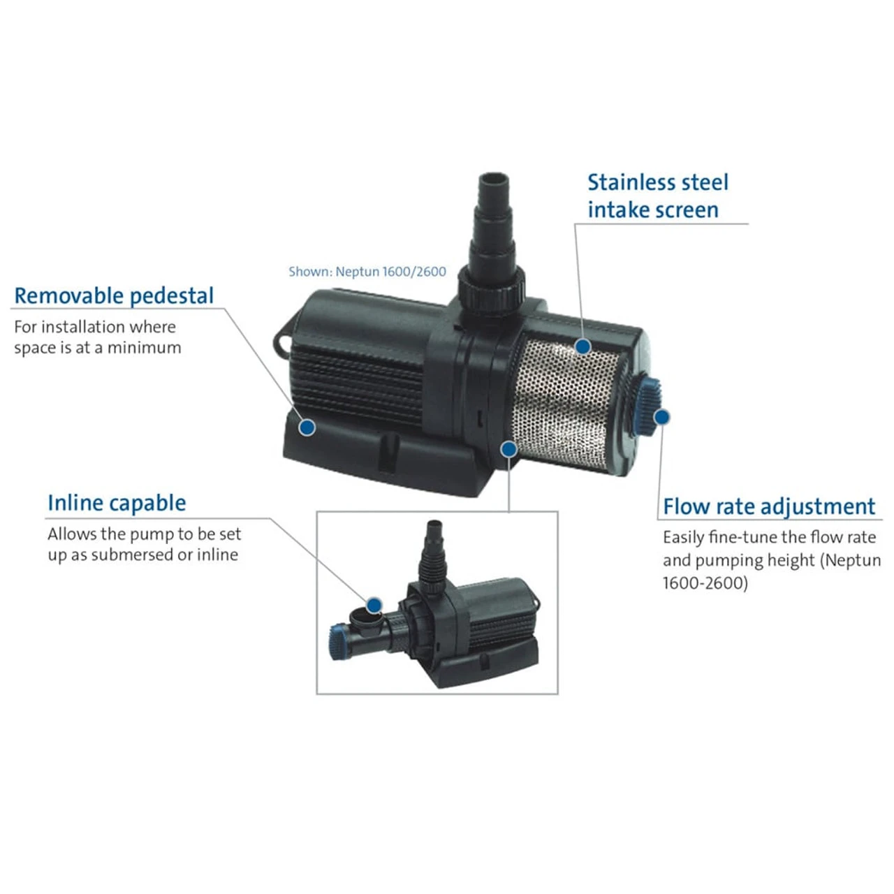 - Inline & Submersible Pump for Waterfalls & Large Fountains